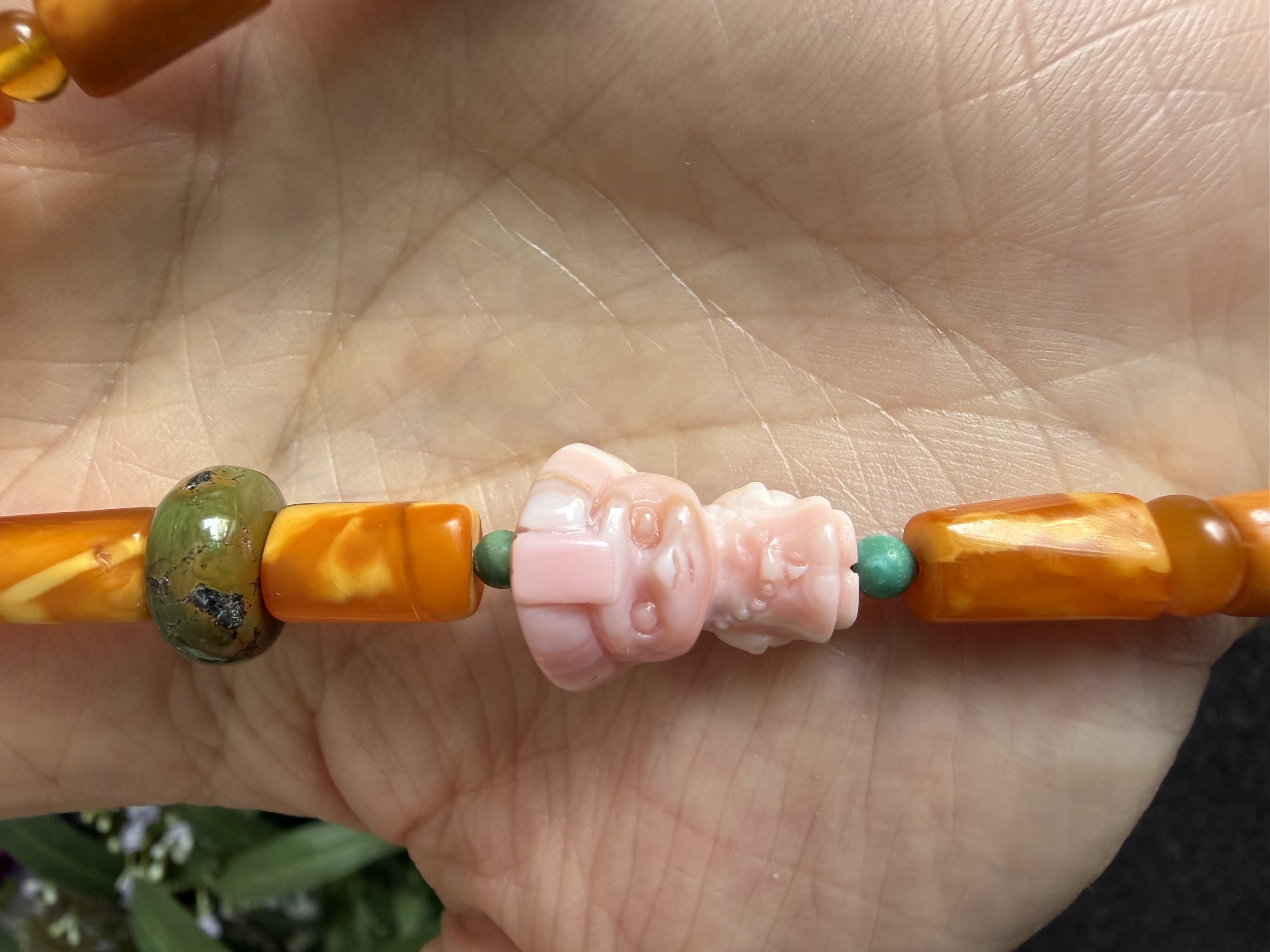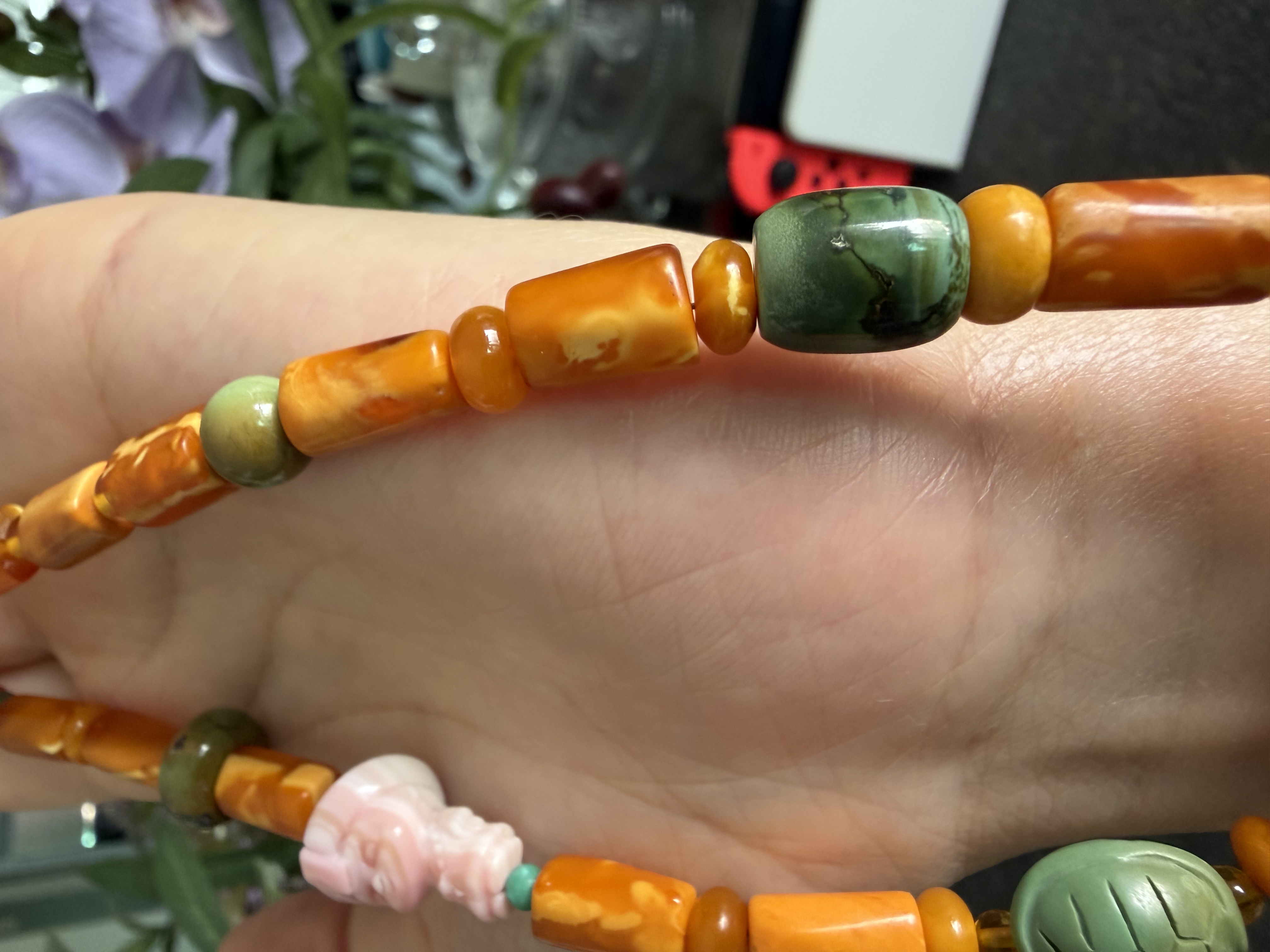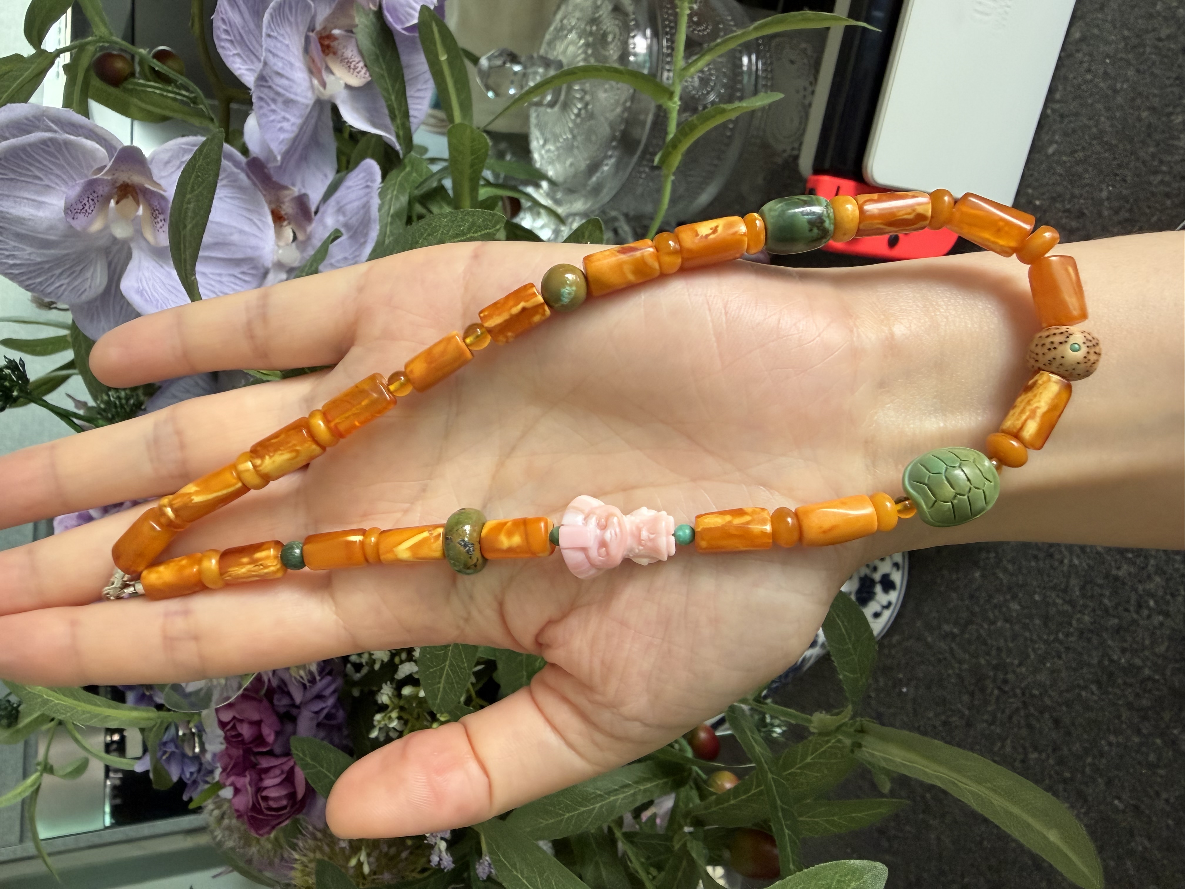 天然老白花蜜蠟/綠松石/胭脂螺/星月菩提 天然保真,支持復檢 ~~*~~*~~*~~*~~*~~*~~*~~*~~*~~*~~ 售前須知: 1.本店寶貝一律實物拍攝,由於受光線影響及顯示器原因,難免存在色差,需要視頻看細節請DM店主。 2.尺寸為人工粗略測量,可能存在微誤差,但懇請唔好憑想像估測。 3.天然產品難免存在石紋礦坑雜質等天然特性,此非瑕疵,請知悉。 4.手工制作無可避免燒結黏膠等痕跡,完美主義者慎選。 5.全店僅限順豐,一旦發貨,唔退唔換。